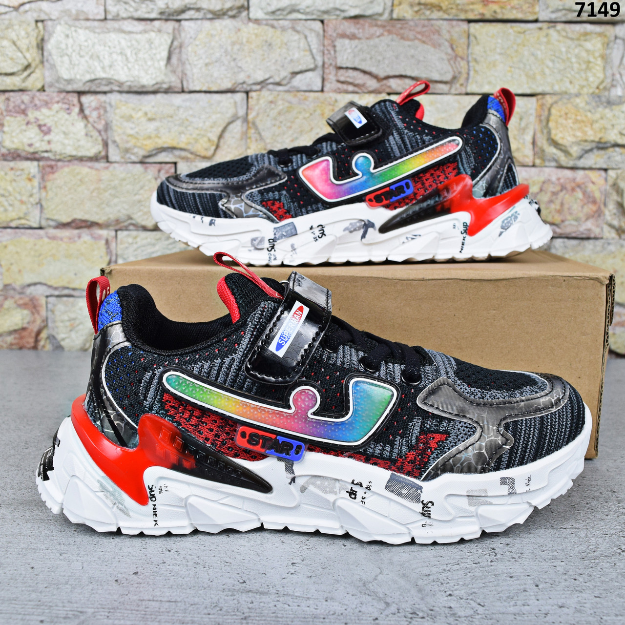 Яскраві текстильні кросівки для підлітків чорного кольору з різнобарвним принтом від виробника Paliament — чудовий вибір для хлопчика. Якісні, стильні та дуже зручні, акуратне пошиття.
